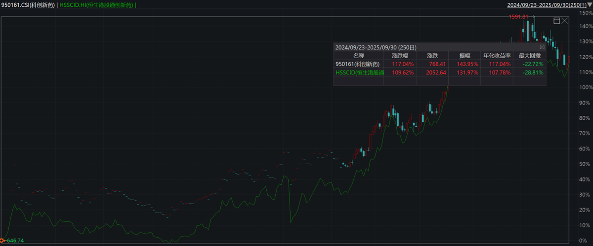 關(guān)注20cm標(biāo)的科創(chuàng)創(chuàng)新藥 ETF(589720),跟蹤指數(shù)“924行情”以來跑贏恒生港股通創(chuàng)新藥指數(shù)
