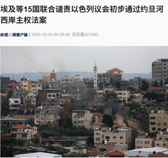 當(dāng)?shù)貢r(shí)間10月23日,15國(guó)及兩組織發(fā)表聯(lián)合聲明,強(qiáng)烈譴責(zé)以色列議會(huì)批準(zhǔn)的將主權(quán)擴(kuò)展至約旦河西岸的法律草案,稱其違反國(guó)際法和聯(lián)合國(guó)決議。伊朗、阿聯(lián)酋也發(fā)表聲明譴責(zé)。巴勒斯坦外交部、哈馬斯等也強(qiáng)烈譴責(zé)。初步投票后,美國(guó)表達(dá)了擔(dān)憂。哈馬斯稱此舉暴露了以色列真實(shí)面目,任何兼并嘗試均非法無(wú)效。