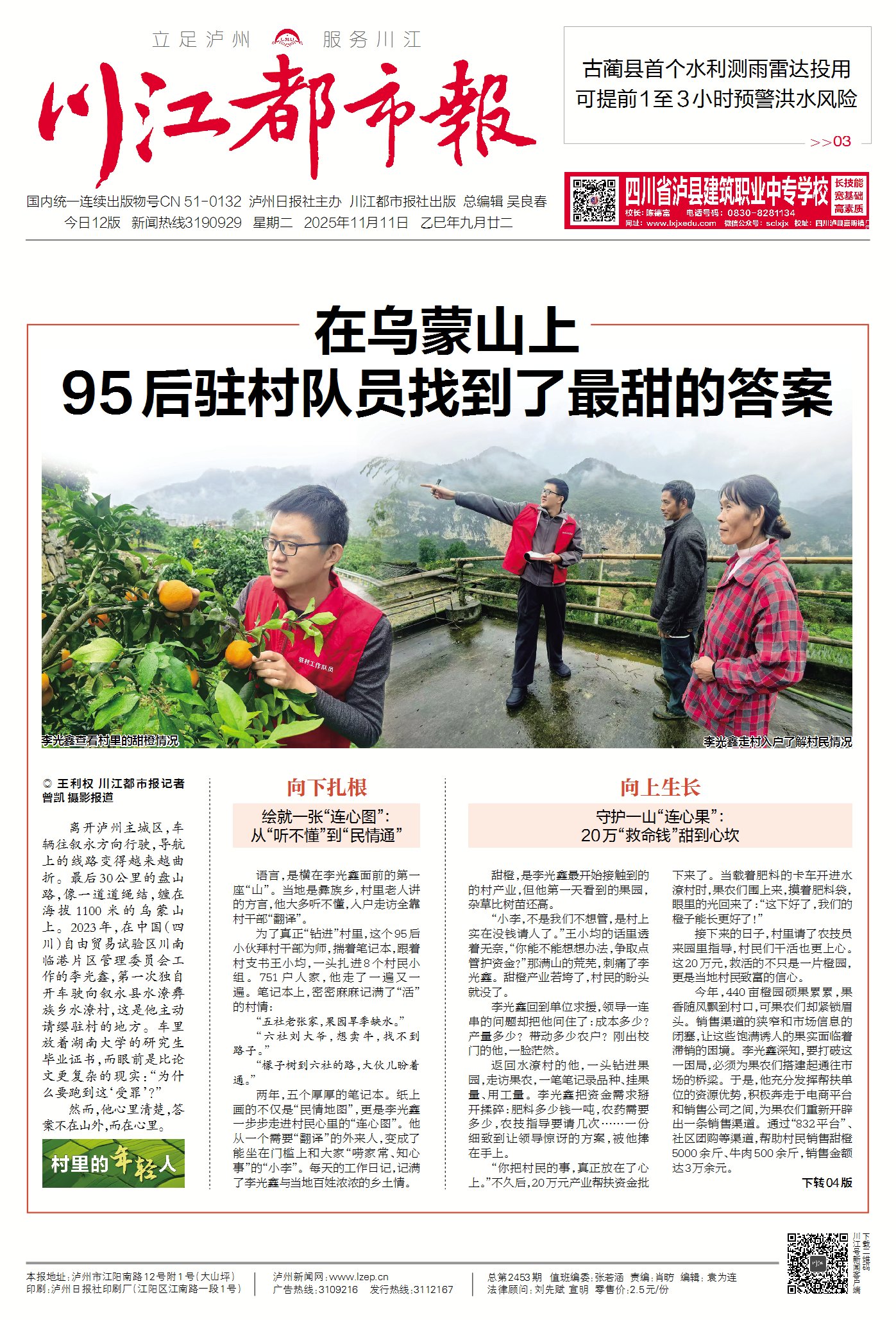 對于李光鑫而言,駐村早已不是一份工作。在這里,他把“理論”變成了“實干”,把“陌生”變成了“牽掛”。水潦村的晨霧、橙園的花香、村民的鄉音,已成為他心中最溫暖的光,和深深眷戀的“第二故鄉”。
