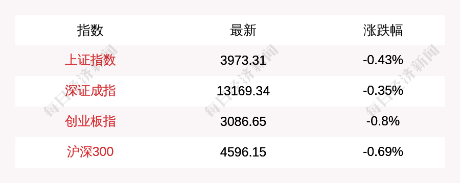 每經AI快訊:北京時間11月17日11:30,上證指數早盤下跌17.18點,跌幅為0.43%,報收3973.31點,成交額5320.32億元;深證成指下跌46.69點,跌幅為0.35%,報收13169.34點,成交額7336.93億元;創業板指下跌24.86點,跌幅為0.8%,報收3086.65點,成交額3277.59億元;滬深300下跌31.99點,跌幅為0.69%,報收4596.15點,成交額2845.98億元。