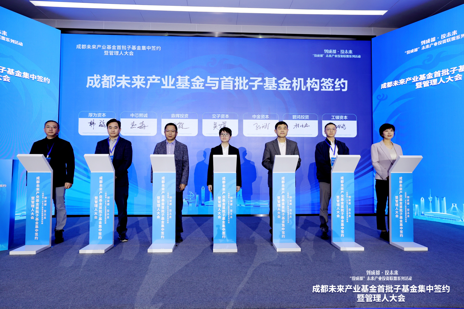 此次活動上,在眾多國內(nèi)頂尖投資機構(gòu)代表、重點企業(yè)及園區(qū)負責人等嘉賓的見證下,規(guī)模約65億元的首批子基金以及3.2億元投資完成簽約,標志著成都千億元級未來產(chǎn)業(yè)基金集群從“政策布局”全面邁向“實體運作”。