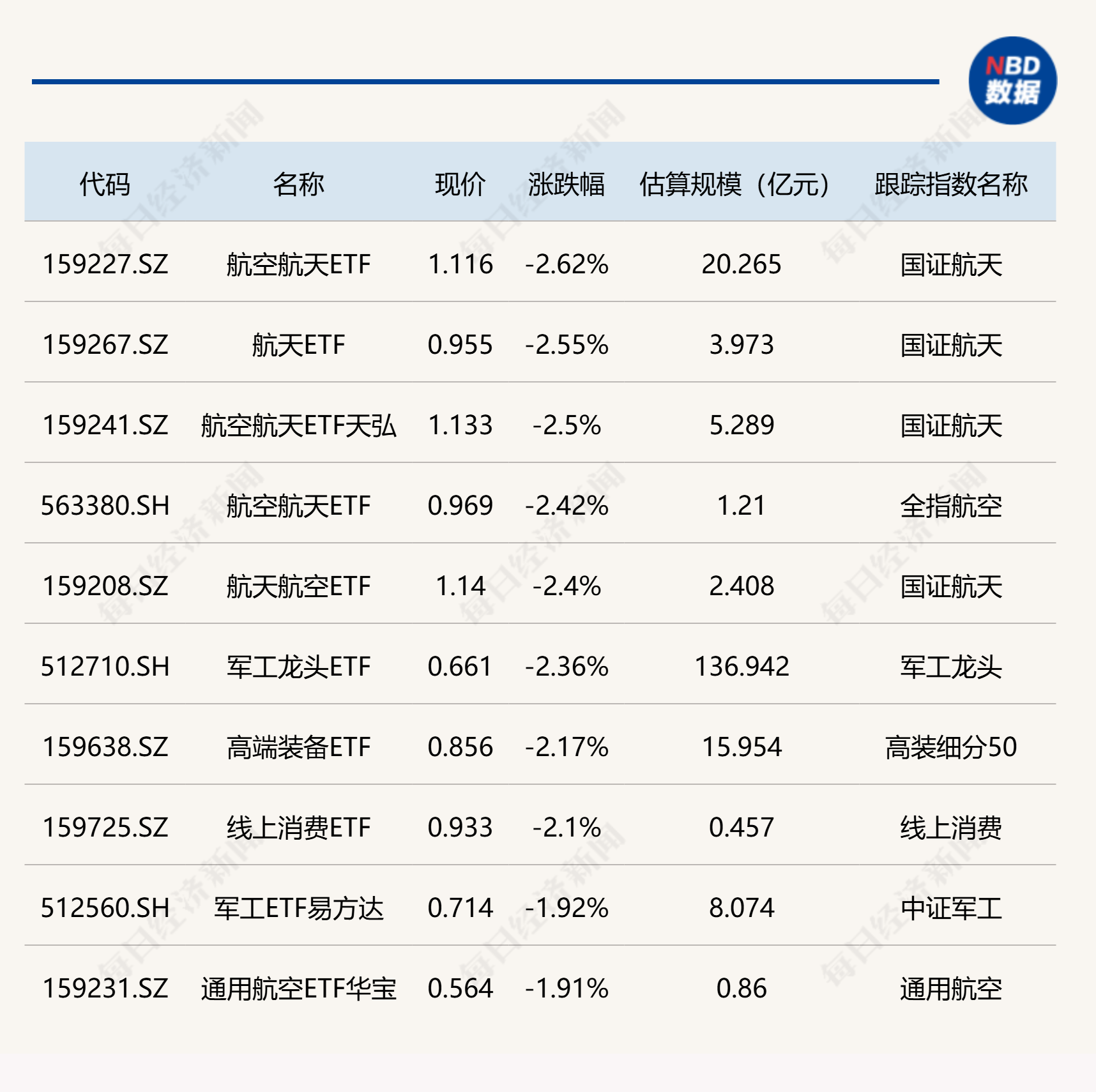 下跌方面,航空航天相關(guān)ETF跌超2%。
