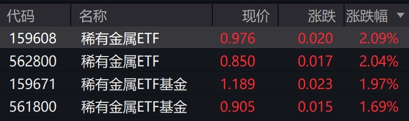 受盤面影響,稀有金屬ETF漲約2%。