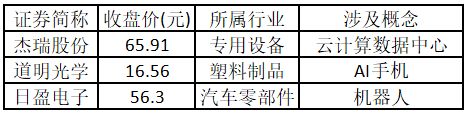 另外,連板數前5的漲停股中,有2只屬于AI手機概念股,其中道明光學更是5連板股價創出歷史新高。