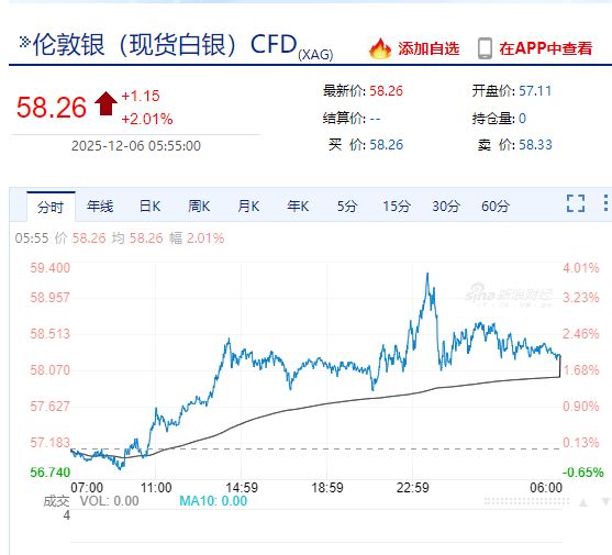 本周強勢的白銀在刷新歷史新高59.31美元后,漲幅回落至2%。