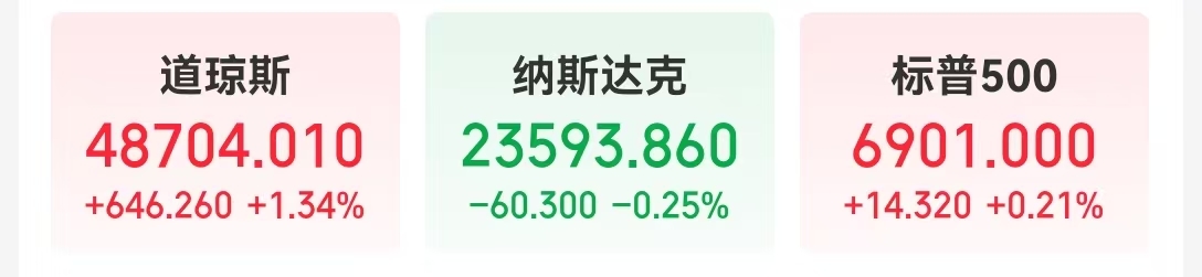 當地時間12月11日,美股三大指數收盤漲跌不一,道指上漲646.26點,漲幅1.34%;納指跌0.25%;標普500指數漲0.21%。