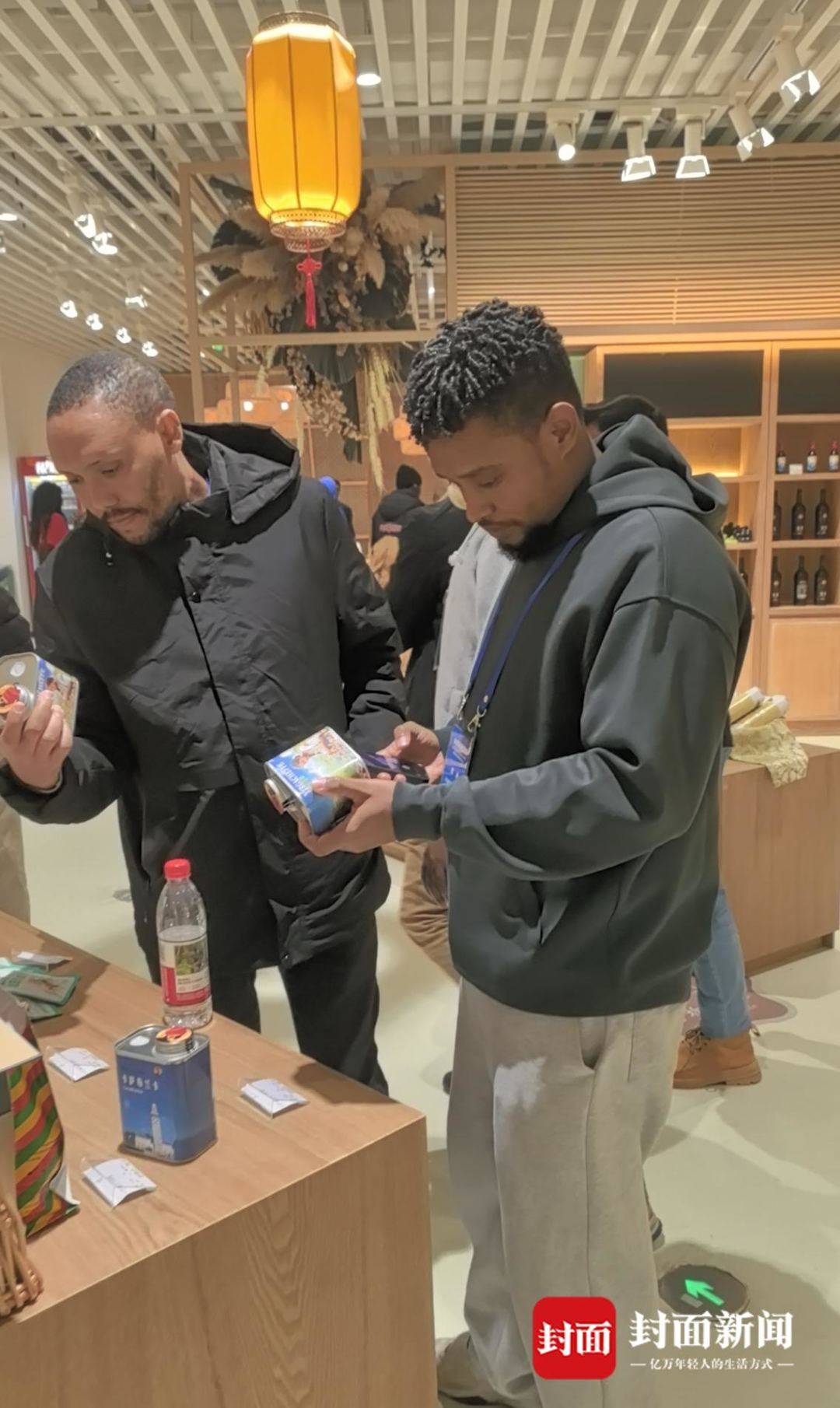 來自埃塞俄比亞的留學生近距離察看從家鄉進口的咖啡產品