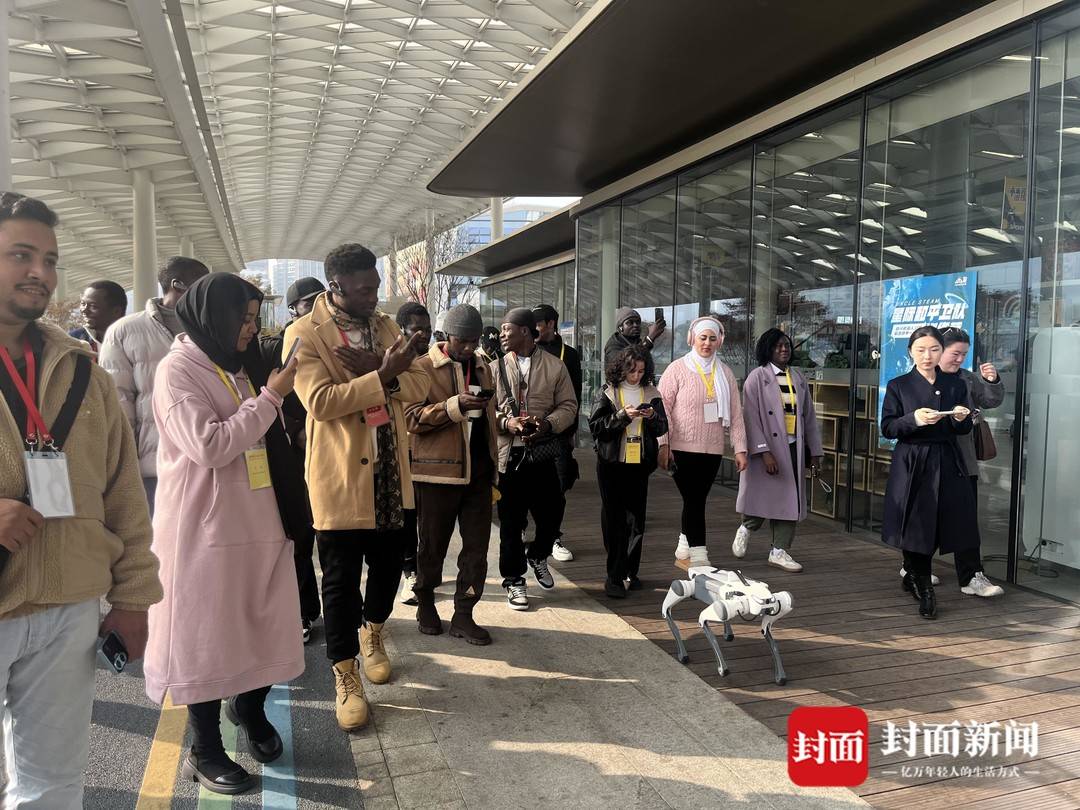 非洲留學生在欣賞機器狗表演