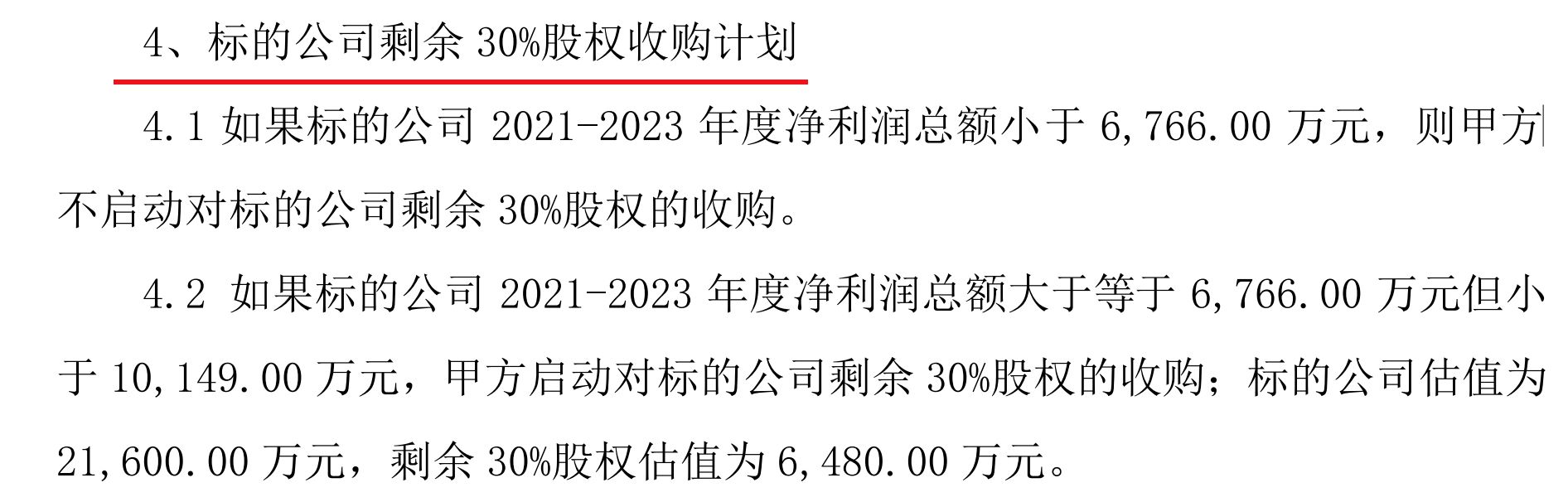 每經記者注意到,按照彼時協議約定條件,如果標的公司(易圖地信)2021—2023年度凈利潤總額小于6766萬元,則測繪股份不啟動對標的公司剩余30%股權的收購。如果標的公司2021—2023 年度凈利潤總額大于等于6766萬元但小于10149萬元,測繪股份啟動對標的公司剩余30%股權的收購;標的公司估值為21600萬元,剩余30%股權估值為6480萬元。