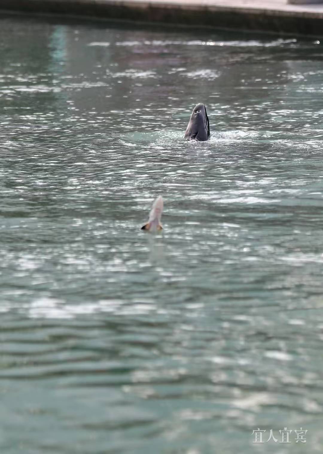 長江公園內(nèi),鳥翔魚躍,引市民游客圍觀 蘭鋒 攝