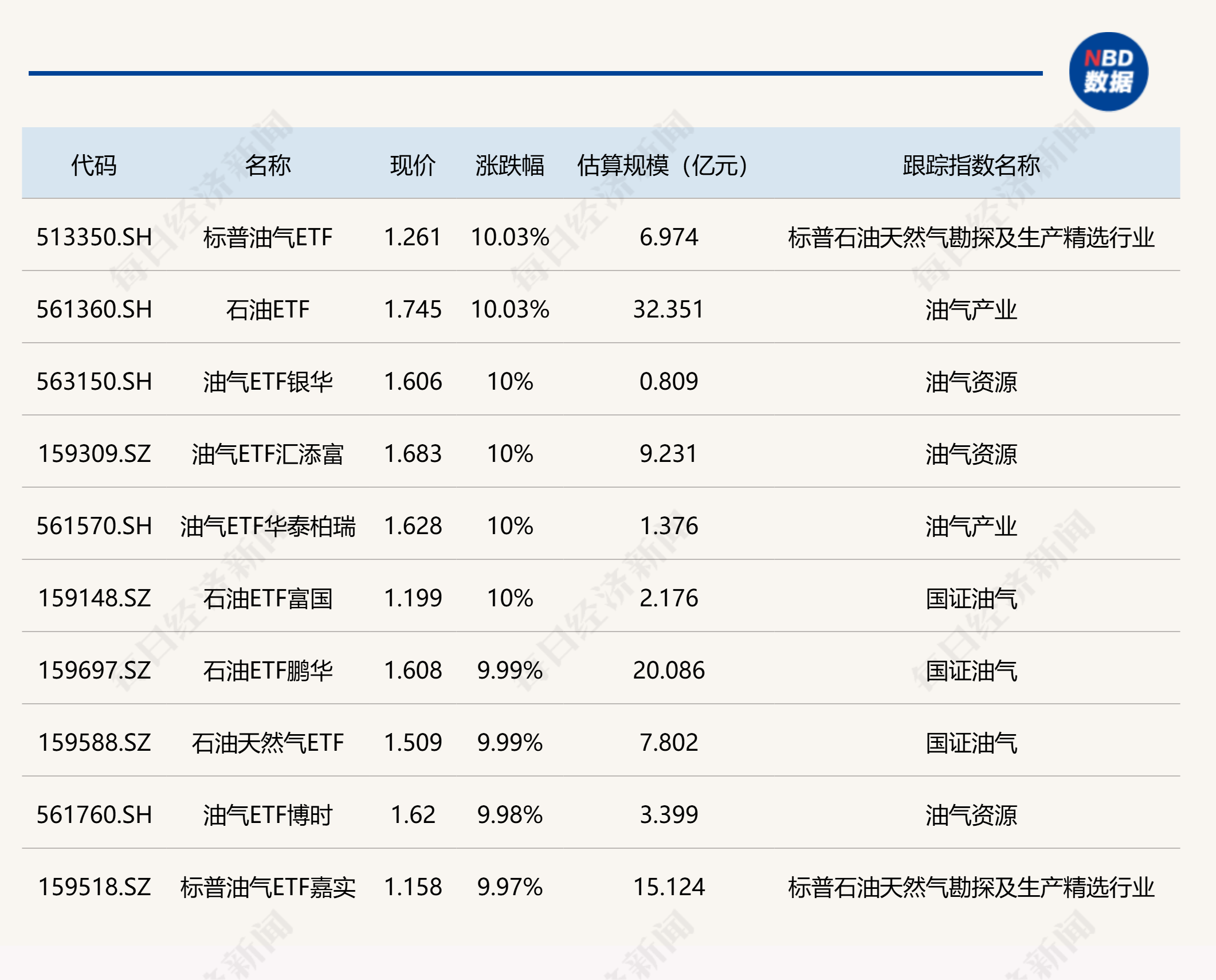 ETF漲跌幅方面,多只油氣相關ETF漲停。