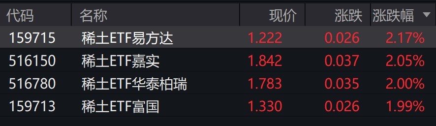 稀土概念股走強,盛和資源漲超5%,北方稀土、中國稀土、包鋼股份漲超4%。