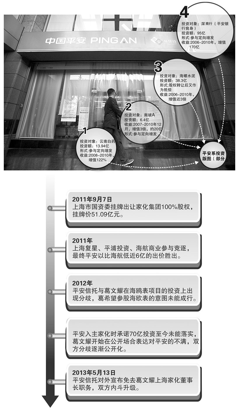 “因為平安曾經承諾投資70多億,把集團發展成熟,但是到現在根本沒實行,他們一進來基本在集團就沒做事情,留守處理資產,平安是違反當時承諾的。”葛文耀昨日向《每日經濟新聞》解釋其對平安不滿的原因,“平安進來以后基本沒在集團做過什么事情,我也主要是在上市公司(做事)。”